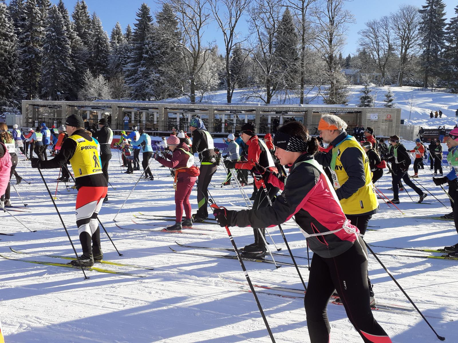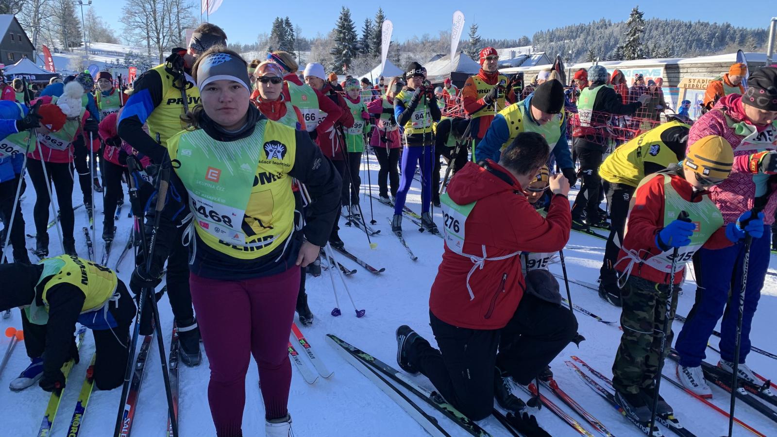 Výstřel z pistole zabíjí chmury. Vyrážíme! Jestli se to nepovede, aspoň se zúčastní, vždyť jí jde i o tu legraci kolem, utěšuji se. Slunečný mrazivý den s ideálními sněhovými podmínkami se shovívavě usmívá na hemžení ve stopě. Kdyby ho měl někdo vědomě připravit, lépe by to zařídit nedokázal. V tlačenici na prvních několika kilometrech se propadáme, nedaří se nám prosadit se mezi ostatními, nakonec před sebou naše soupeře ani v dáli nevidím. Teprve před půlkou našich 10 kilometrů, kdy už se startovní pole rozprostřelo na trase, můžeme přidat a jsme rychlejší než ostatní. Trasování se daří, jen přechod přes silnici s výraznou terénní vlnou končí pádem.
