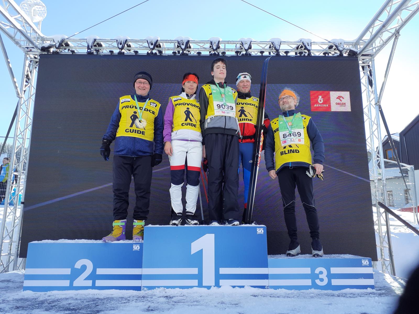 V poslední čtvrtině předbíháme i dívky, se kterými soupeříme, a teď už jen vydržet nasazené tempo do cíle. Cílová rovinka je totální euforie. Jásající a povzbuzující davy, obzvláště oceňující výkony slabozrakých, atmosféra skoro jako na olympiádě. Nakonec jsme v kategorii slabozrakých druzí, stojíme na stupních vítězů!