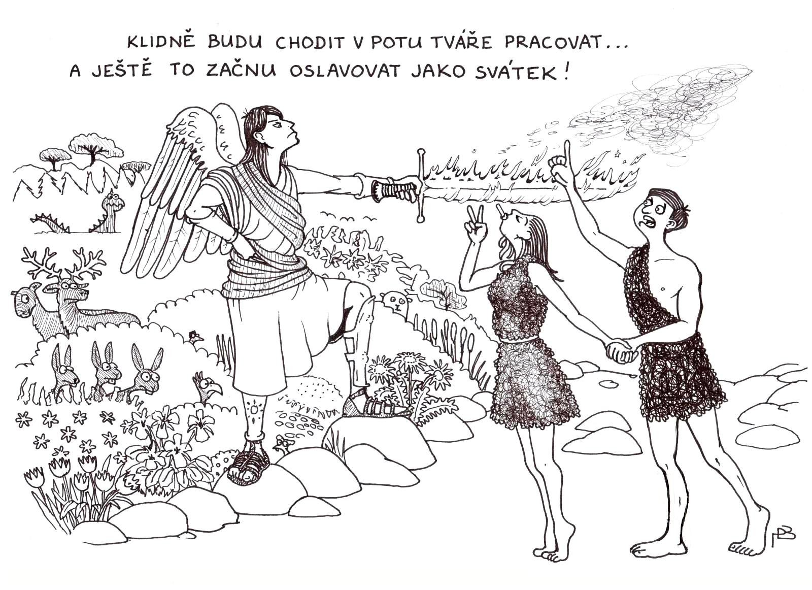 Pavel Bosman: Adam, Eva a práce (kreslený humor)